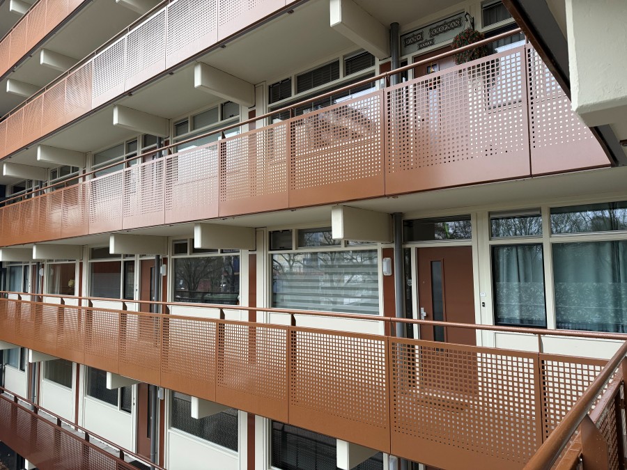 “Daarnaast is er veel aandacht besteed aan isolatie (glas, dak en gevel), een esthetische opwaardering van de buitenzijde van de flats én het verhelpen van tochtklachten”, gaat Ton verder. “Daarom worden voor- en balkondeuren vervangen, want daar tochtte het vooral.” Richard vult aan: “Verweij levert hiervoor 453 geïsoleerde Verweij BetterLife voordeuren en 726 Verweij BetterLife balkondeuren. Alle deuren krijgen een meerpuntsluiting en een dubbele kierdichting door middel van inbouwtochtstrippen en opbouwtochtstrippen.” De combinatie van alle maatregelen leidt tot een mooie stijging van het energielabel. “We gaan van A/B en C naar A en A+ als het warmtenet volledig operationeel is”, aldus een zichtbaar trotse Ton.