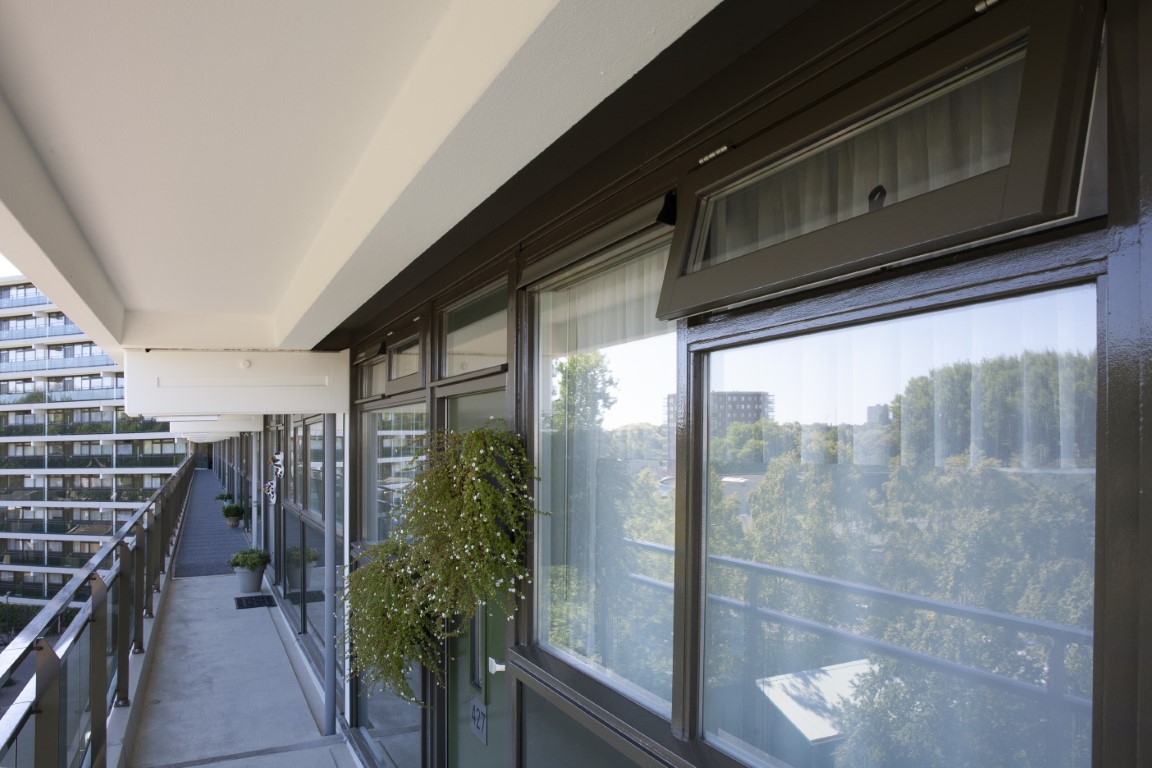 In de lifthallen en de vide op de eerste verdieping waren de kozijnen wél aan vervanging toe. Rob: “Deze zijn ook geproduceerd en gemonteerd door Verweij. Het is heel prettig dat we zoveel verschillend werk bij één partij kunnen uitbesteden. Bij de selectie van samenwerkingspartners houden we hier ook rekening mee. Net als met onderlinge samenwerkingen. Verweij Houttechniek en Van Wijk Vastgoedonderhoud werken namelijk al jaren samen. Zo hadden we een sterk team voor de complete gevel.”